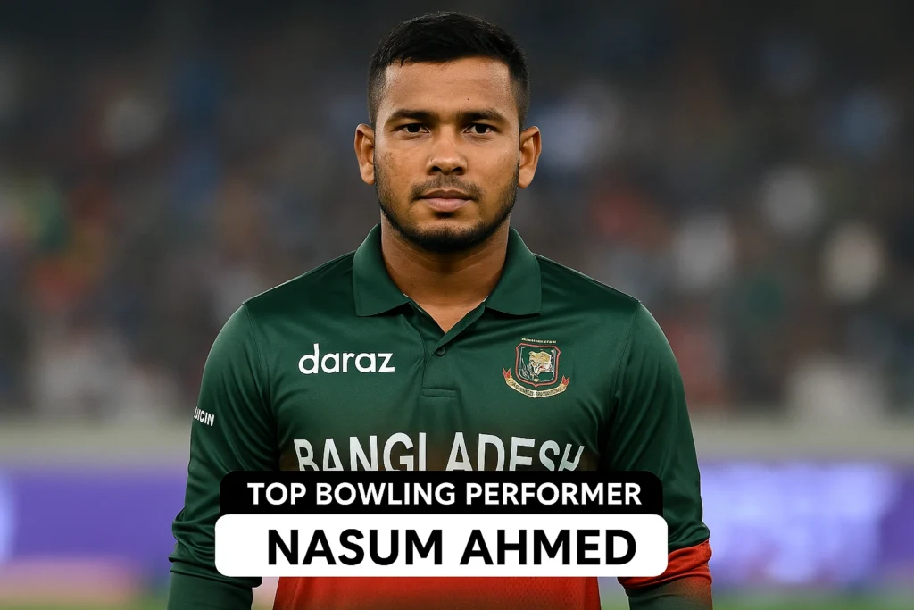 Nasum Ahmed was outstanding with the ball, taking 2 wickets in 4 overs and 11 runs with NRR: 2.80
